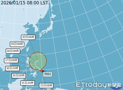 ▲熱帶性低氣壓TD01。(圖/氣象署提供)