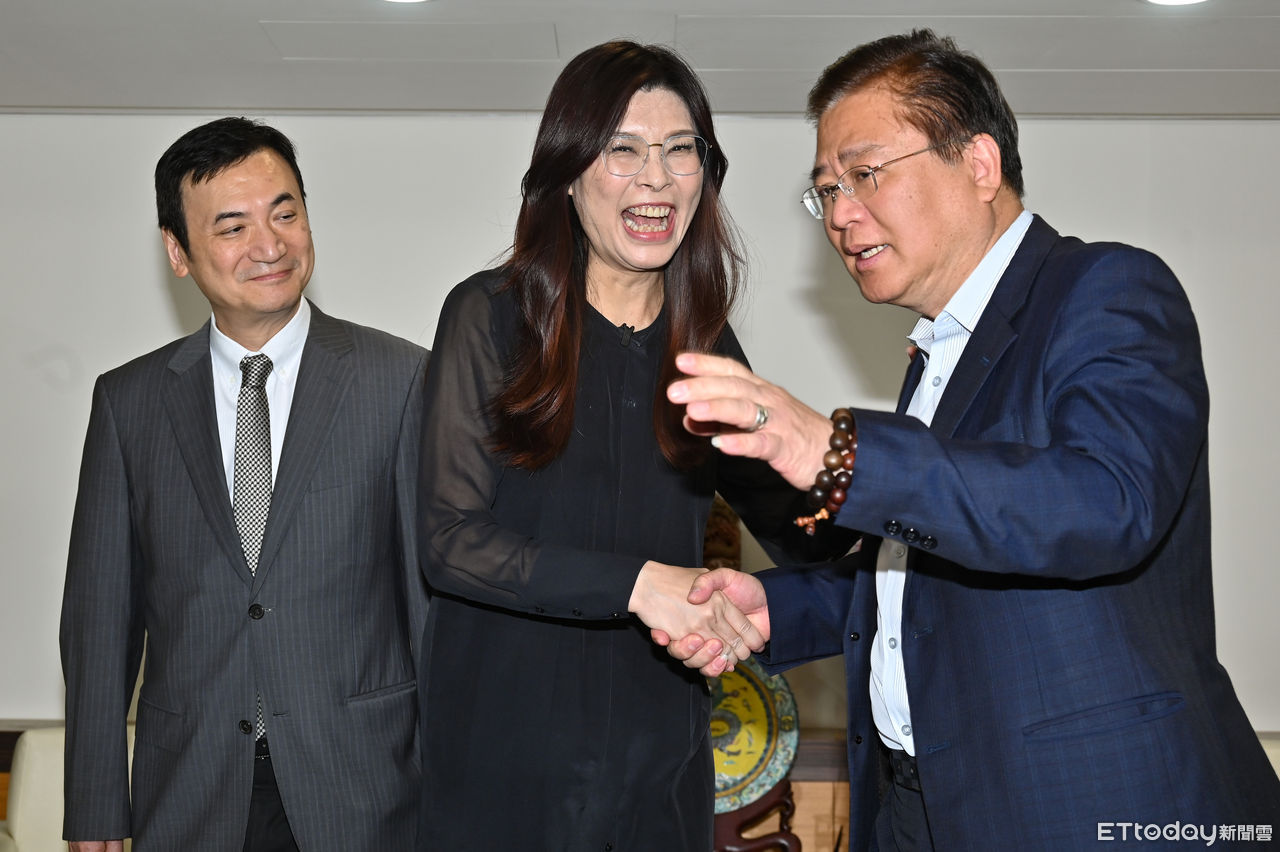 ▲鄭麗文先前(中)拜會商總理事長許舒博(右),左為前國安會副秘書長楊永明。(圖/記者李毓康攝)
