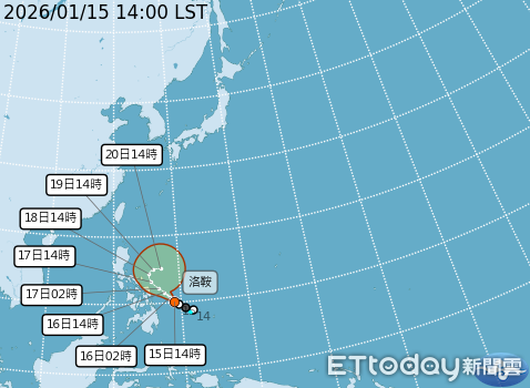 他指出,今天生成的颱風「洛鞍」距離遙遠,強度預估維持輕颱下限,對台灣沒有直接影響,未來將朝西北西沿菲律賓東南方北上,下周日減弱再往東轉,下周一或周二就會消散。