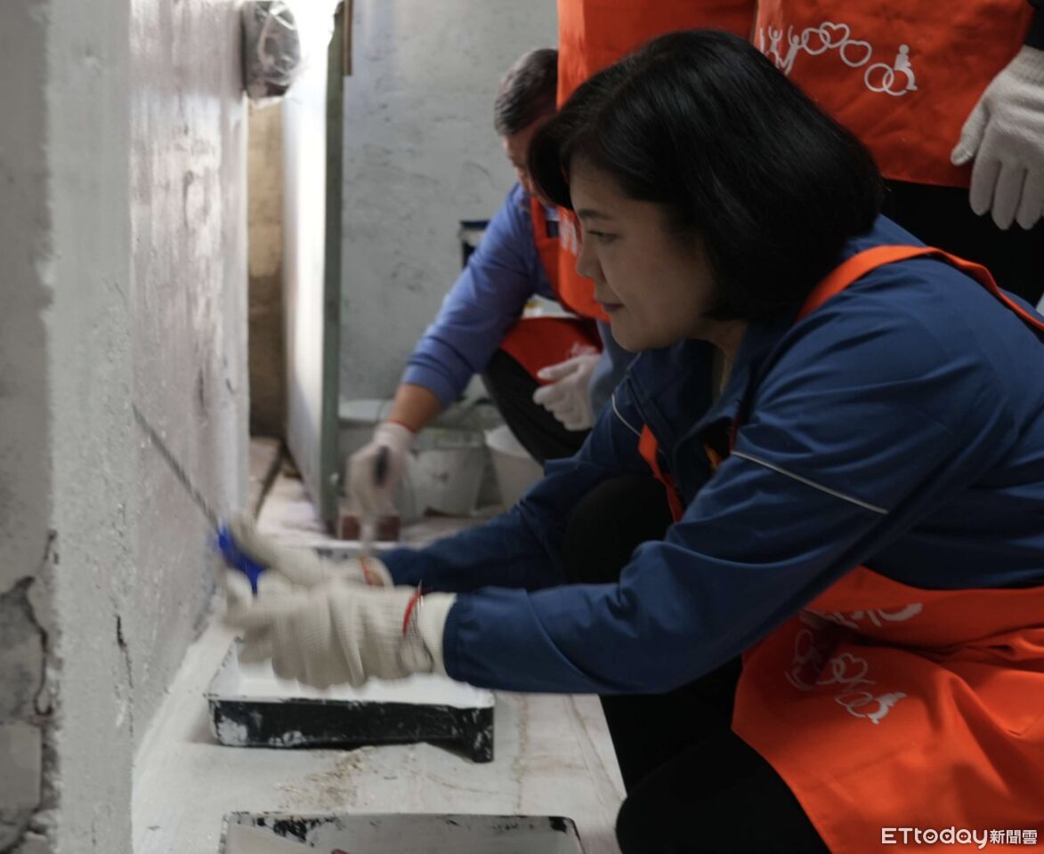 ▲雲林縣長張麗善前往口湖鄉視察雙B住屋修繕成果,並與志工一同整理牆面。(圖/記者游瓊華翻攝)