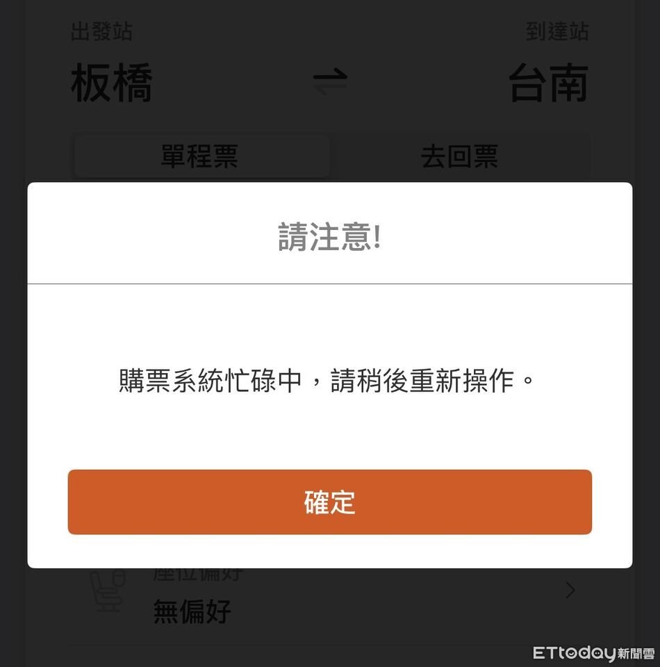 高鐵今天凌晨0時起開放春節車票訂票,社群平台全是半夜搶票民眾的一片哀號,急喊「訂票系統進不去」,網友崩潰表示「半夜搶過年期間的高鐵票搞得像在刷演唱會票」、「高鐵票怎麼跟演唱會一樣難搶」、「完全卡死」、「最終戰績花了45分鐘」、「近年最卡的一次」。不過也有網友約10分鐘就搶到車票,還有民眾到超商多媒體機秒購票,直呼很順。