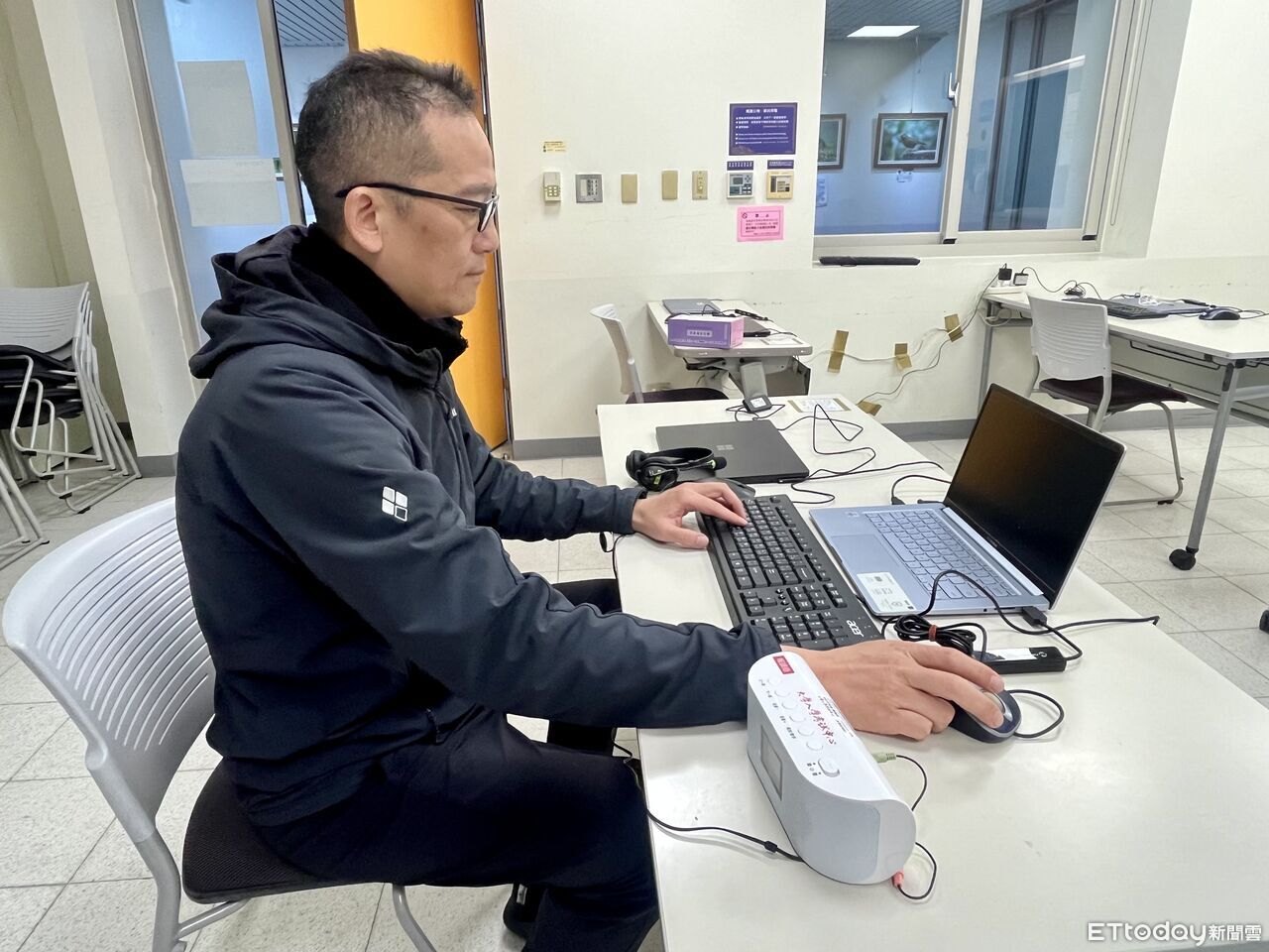 ▲台大特殊生試場,共有24名考生申請使用盲用電腦。圖為工作人員使用電腦示意圖。(圖/記者許敏溶攝)