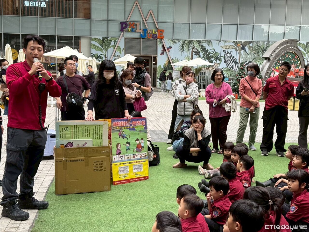 ▲台南市消防局後甲分隊前進南紡購物中心辦理防災宣導,向民眾講解地震與火災應變觀念。(記者林東良翻攝,下同)