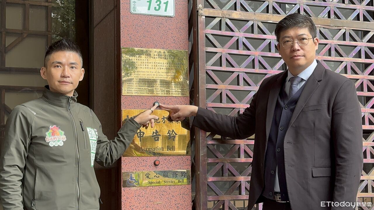 ▲民進黨市議員初選參選人張銘佑(左起)與律師詹晉鑒到北檢告發黃國昌涉嫌洩密 。(圖/記者劉昌松攝)