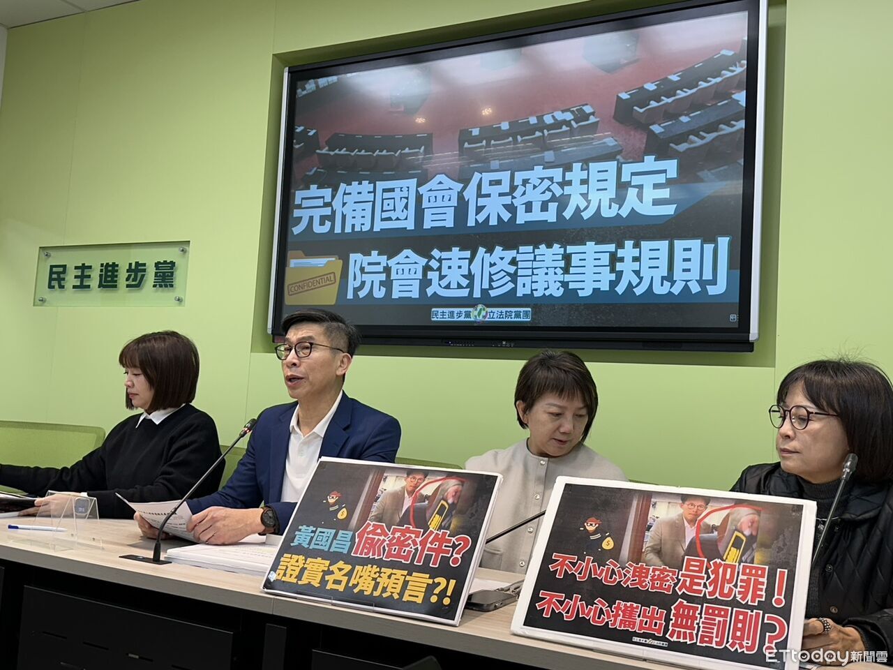 ▲民進黨團「完備國會保密規定 院會速修議事規則」記者會。(圖/記者詹詠淇攝)