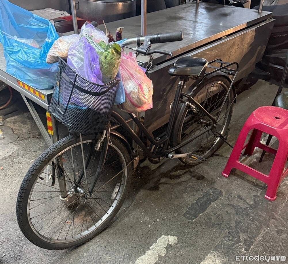 該名朱姓阿公(89歲)近日一早就騎著腳踏車從住家到北屯水湳市場採買,滿滿幾袋豬肉、雞肉、魚肉、蔬菜甚至餅乾也都買好了,重達8公斤的食材再放置於腳踏車車籃前。