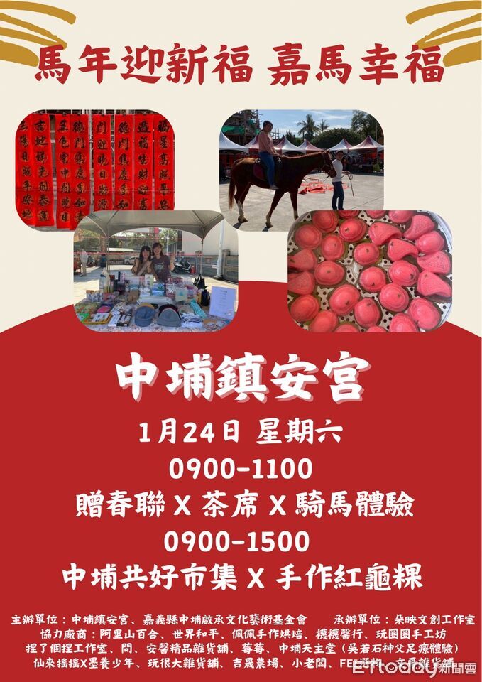 活動當日上午9點至11點,將辦理贈送春聯活動,同時設有由中埔在地人共同參與的茶席體驗,讓民眾在輕鬆的交流氛圍中,感受地方人情與生活文化;現場亦安排騎馬體驗,提供親子及一般民眾近距離接觸農村生活的機會。