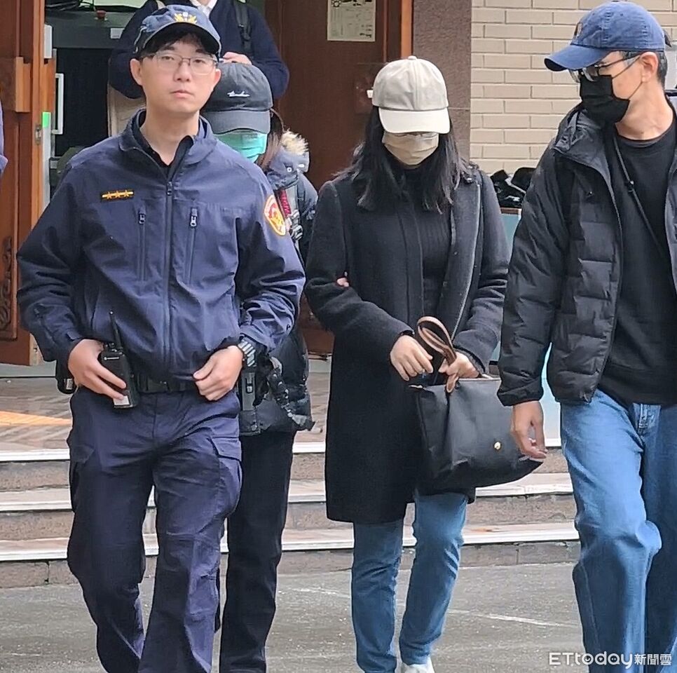 ▲陳尚潔全身包緊緊,開完庭頂著周遭「剴剴戰士」震耳欲聾的叫喊聲上車離開。(圖/記者黃哲民攝)