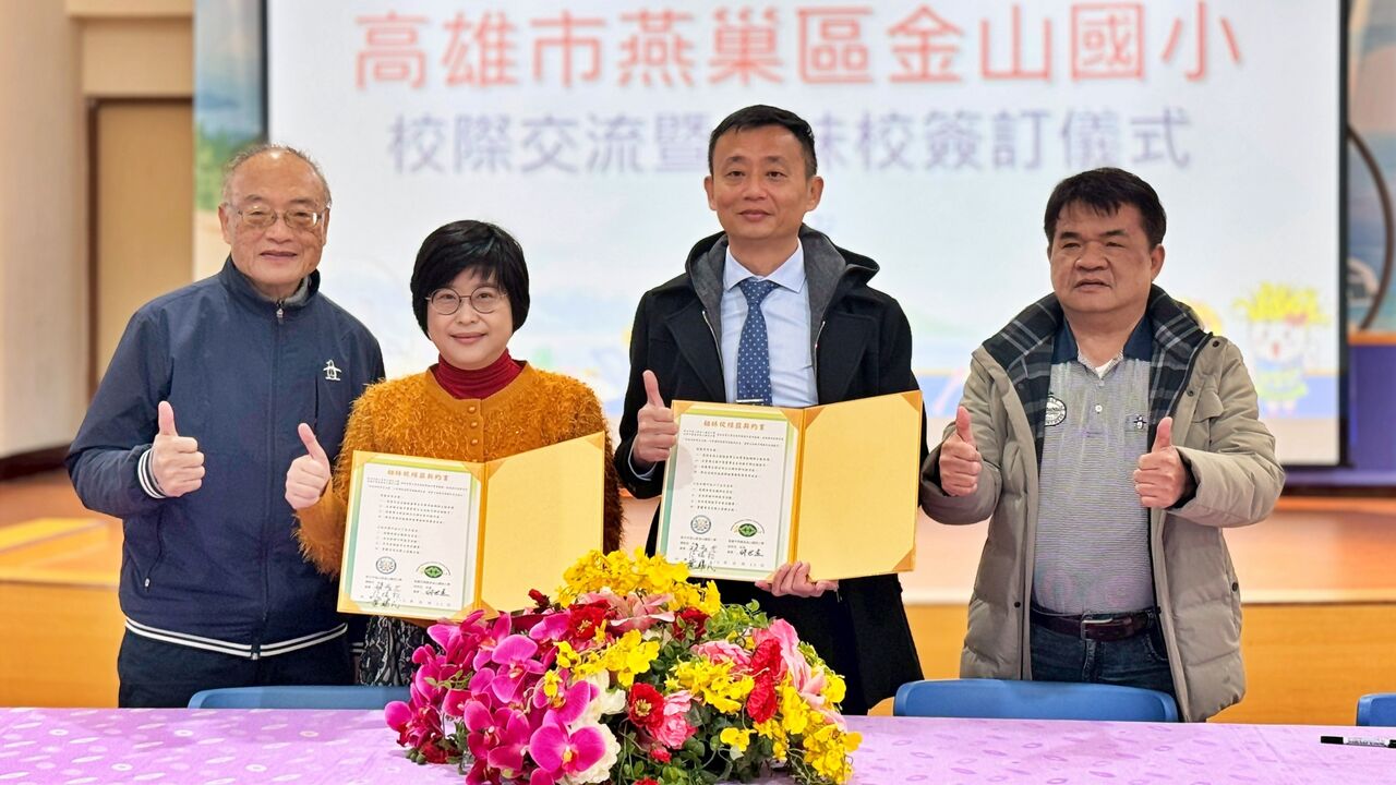 新北市金山區金山國民小學與高雄市燕巢區金山國民小學,為全台唯二同樣以「金山」為名的國民小學,於今(22日)展開首次跨縣市校際交流,並正式簽署姊妹校合作備忘錄(MOU),寫下台灣教育史上難得的「金山遇見金山」動人篇章。兩校雖相距300多公里,卻因同名結緣,牽起一段別具意義的校際情誼。