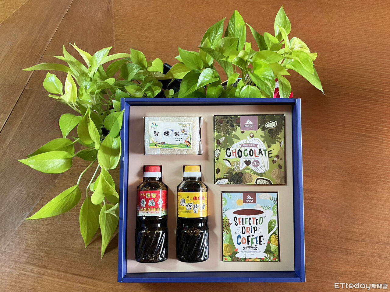 屏東科技大學以「屏科五寶」作為感謝與會貴賓之伴手禮,內容涵蓋馳名的「薄鹽醬油」與「薄鹽醬油膏」、以友善農法及智慧化水稻栽培技術生產的「智穗低碳米磚」、經高溫烘焙優化風味的「 70% 濃醇巧克力」,以及嚴選自產地咖啡豆、於模擬食品 GMP 生產線製作的「手沖精品濾掛咖啡」。透過兼顧研發技術、製程管理與永續理念的校內產品,具體展現屏科大在智慧農業與食品科技領域的研發成果與實作能量。