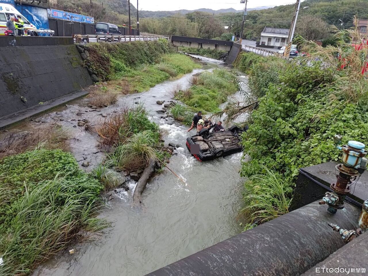 新北市貢寮區和美街23日上午11時04分發生一起車禍!一輛自小客車因不明原因翻落路旁約5公尺深的河道中,現場水位高度約達車身一半。警消接獲報案後,隨即派遣人車趕赴現場救援,並從車內救出2名傷者,其中一名男子被發現時已無生命跡象,另一人則是意識清楚、身體受有擦挫傷,警消緊急將人送往醫院搶救。目前詳細事故發生原因及經過,仍有待警方進一步調查釐清。