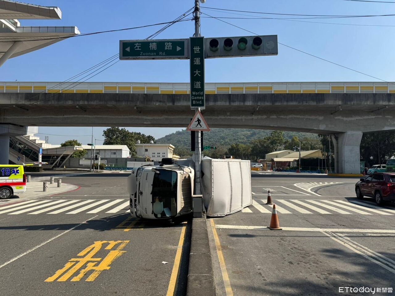 楠梓警分局於今(23)日上午11時許接獲報案,指稱在楠梓區左楠路與世運大道交會處發生車禍。據調查,現年29歲的郭姓男子當時駕駛營業小貨車,正由左楠路準備右轉進入世運大道。
