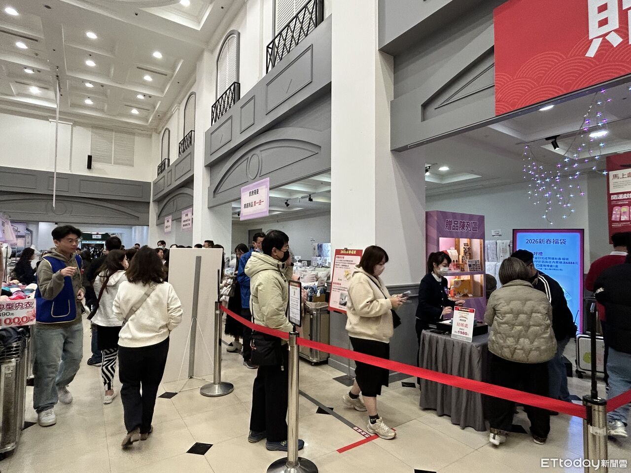 昨日開始,適逢百貨推出會員限定活動,開店前便可見排隊人潮,現場氣氛熱絡。百貨表示,年節期間人流明顯增加,除購物需求外,許多民眾也把百貨空間視為走春的一站,結合裝置藝術與節慶氛圍,成為城市生活的一部分。