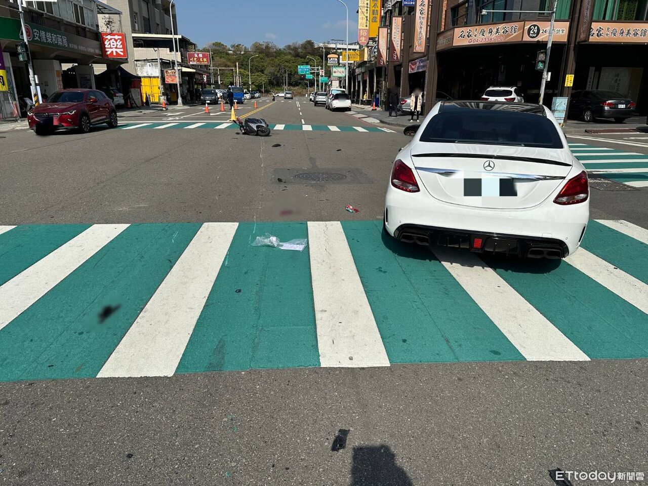 台中賓士猛撞停等紅燈機車!夫妻慘摔 急診醫護衝出救援
