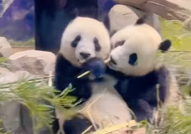 ▲ 旅日雙胞胎大貓熊「曉曉」與「蕾蕾」今(25)日最後一天的公開亮相 。(圖/翻攝 環球網)