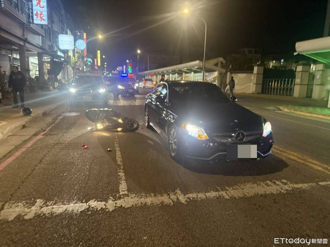 金門縣金城鎮民權路25日傍晚發生交通事故,一輛賓士因停車禮讓行人,遭後方機車追撞,造成機車騎士雙腳擦傷。警方到場處理後,雙方酒測均為零,肇事原因仍待釐清。