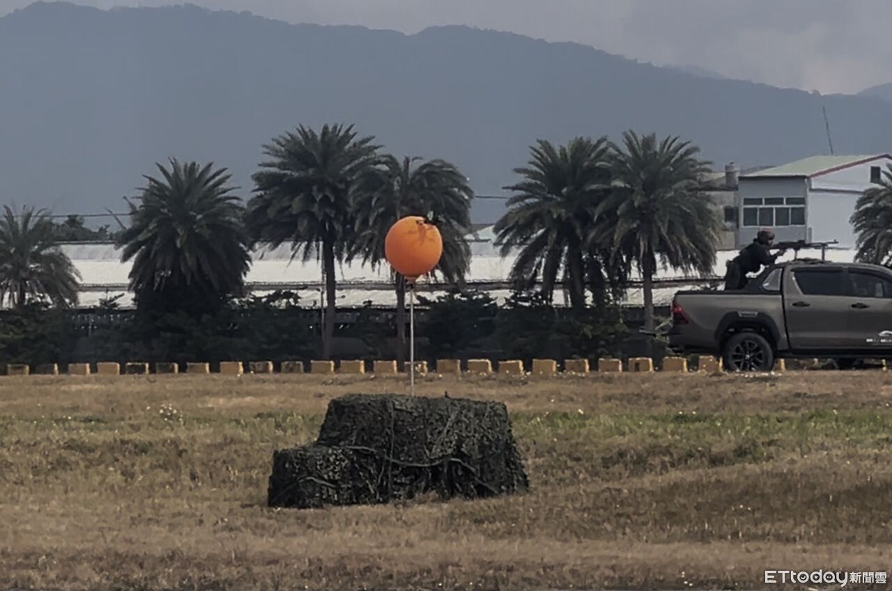 ▲陸軍27日演練攻擊無人機衝撞「氣球假想敵」。(圖/記者蘇靖宸攝)
