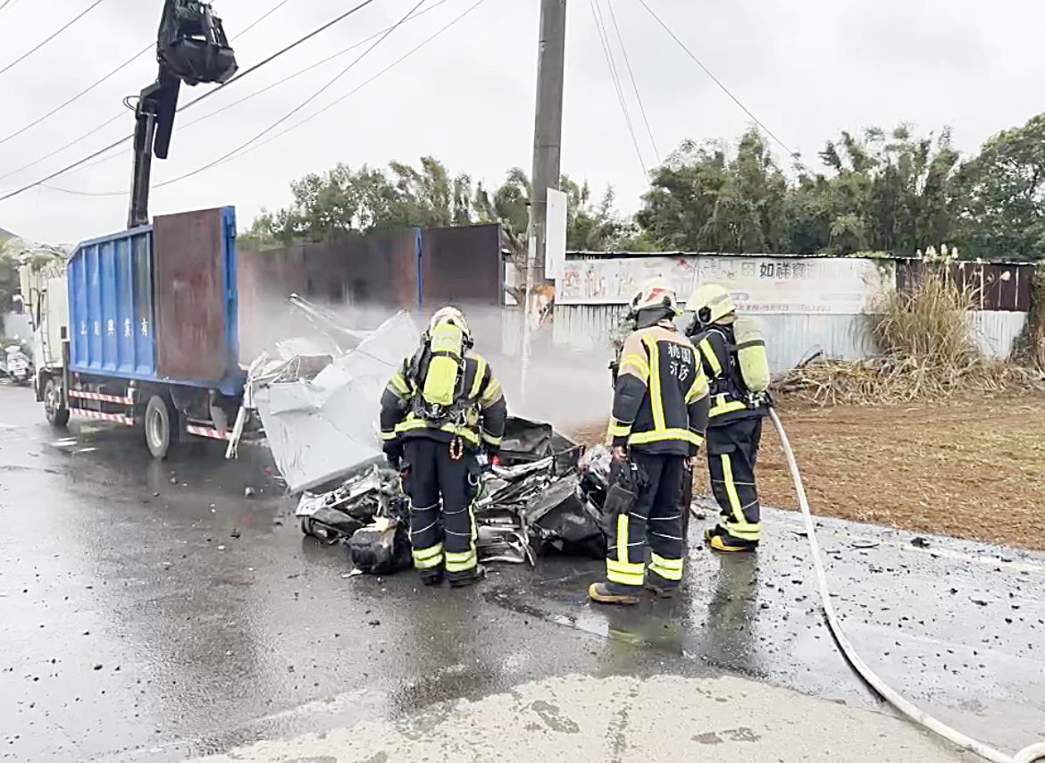 中壢警方指出,今天上午9時59分接獲通報,普忠路、榮民南路口有貨車後車斗起火事故,55歲李姓男子駕駛滿載廢棄家電貨車行經事故地點,察覺後車斗冒煙起火,立即派員到場進行交通管制,消防人員抵達後迅速灌救。