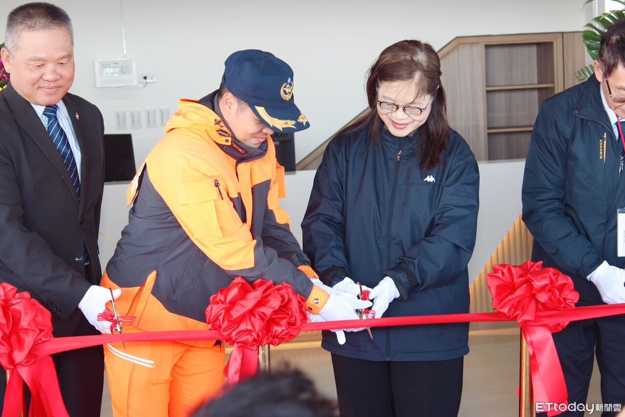▲海巡署南部分署舉行四草漁港安檢所新建廳舍落成啟用典禮,海洋委員會主任委員管碧玲主持剪綵。(記者林東良翻攝,下同)