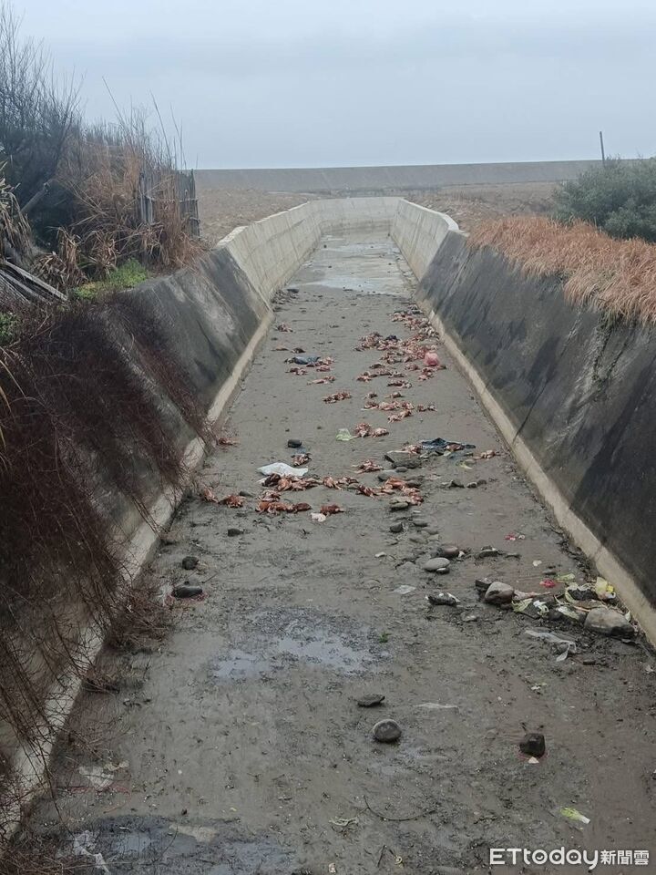 ▲苗栗後龍外埔漁港附近大排圳遭棄置235隻死雞,檢驗確診H5N1禽流感,縣府指疑台中養雞場亂丟,將重罰100萬。(圖/記者楊永盛翻攝,下同)