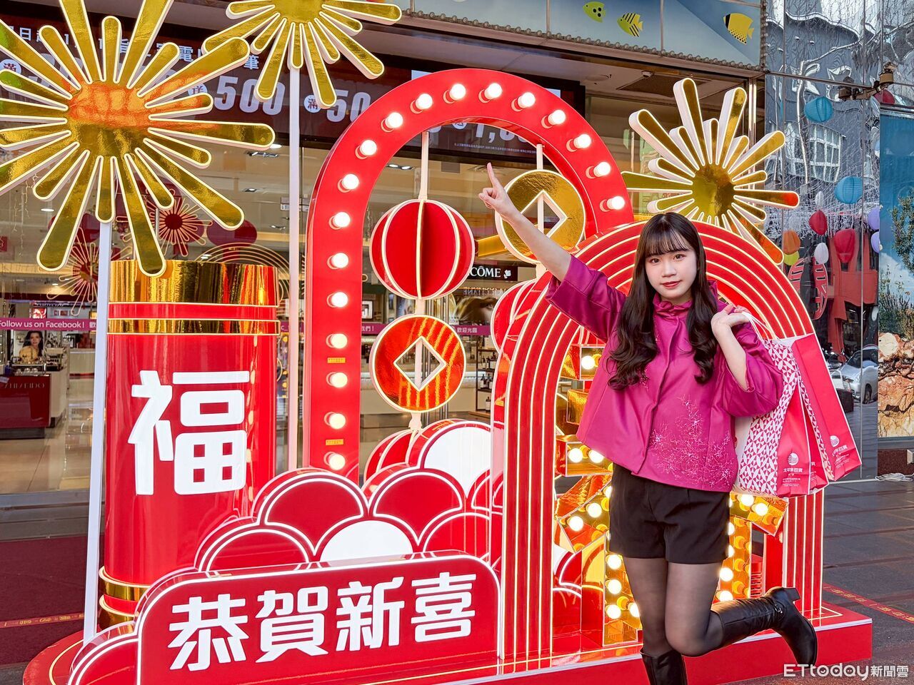 ▲百貨商場換上紅色系節慶布置,營造濃厚新春氣氛。(圖/記者游瓊華翻攝)