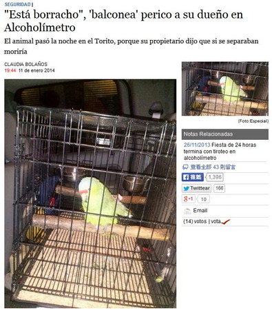 墨西哥墨西哥市49歲男子雷耶斯(Guillermo Reyes)開車被警察攔檢,當他才把車停好,警察就聽到車裡傳出,「他喝醉了!他喝醉了!」(原文:「Está borracho!está borracho!」,即英文「He’s drunk!he’s drunk!」)