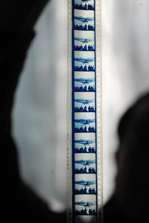 這卷老膠片被放置在一個已鏽跡斑斑的鐵盒內。鐵盒外印有許多日文,但由於時間久遠,已經不好辨認,但清晰可見「神風」二字。詹洪閣向記者展開了膠片,透過光線可以看到「神風」字樣以及飛機飛行、著陸的畫面。期間,還有人群歡迎日本「神風特攻隊」隊員的場景以及亞洲太平洋的地圖。