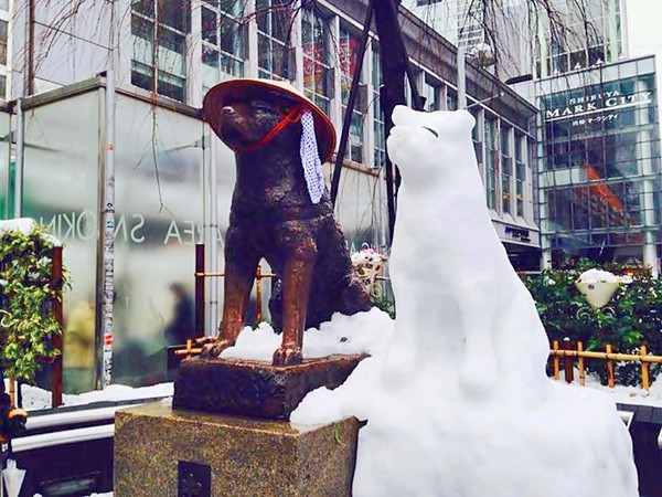 日本近日飽受暴風雪侵襲,首都東京發布13年來首次大雪警報,積雪深度達27公分是45年來之最,15日網路上瘋傳一張感人的照片,有人在澀谷車站地標「忠犬八公」(忠犬ハチ公)的雕像旁,用積雪複製了一尊與雕像一模一樣的雪犬,讓八公在寒冬中有一個伴,畫面溫馨立刻在推特(Twitter)上引發熱論。