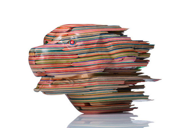 從青少年時期就迷戀滑板運動的日本自學雕塑家Haroshi,成功的將兩個最愛合而為一, 他將老舊滑板回收拆解後,重新組合並雕塑成各式各樣的普普風雕像。為了將滑板當作雕刻素材,Haroshi必須要懂得如何堆疊、黏接不同材質的滑板(滑板的結構組成會因製作工廠、品牌、滑板選手需求而有不同),促使他將滑板做成雕像的動力,便是來自於他對滑板的熱愛;對他而言,他的創作=滑板,而那代表著他生活的本質,也是他用來與自己對話、和世界溝通的方式。