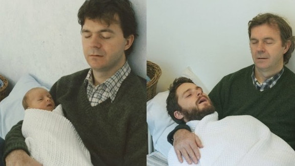 27歲的喬(Joe Luxton)和24歲的李奇(Rich Luxton)坐上時光機,重現20年前畫面,只是一起洗澡的兩人已快擠不進浴缸,而父親手中抱的兒子長滿落腮鬍,就連家中的養的黑狗嘴邊也長了白鬍子,今昔對照圖趣味十足。