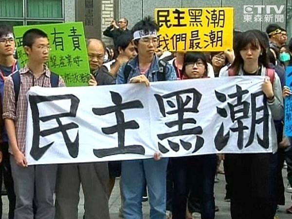 太陽花學運戰火持續燃燒!反服貿黑潮6日下午2點集結中和四號公園,出動300名學生,再度發起「民主黑潮,立委別逃」掃街行動,聲討「立院4大寇」中剩下的2名立委張慶忠、林德福。目前雙和地區已出動約百名員警待命。