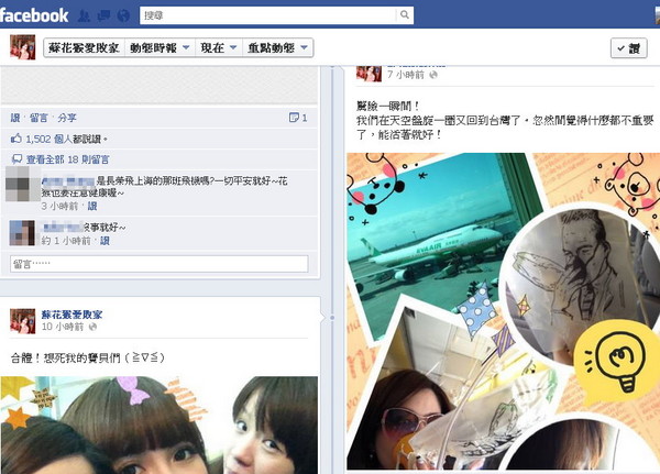 人剛好也在飛機上的部落客蘇花猴,第一時間在臉書上留言寫道「驚險一瞬間!我們在天空盤旋一圈又回到台灣了。忽然間覺得什麼都不重要了,能活著就好!」網友也在下面留言回應,沒事就好,不過也有人開玩笑的說,這樣的情況還能拍照,真的是很樂觀。