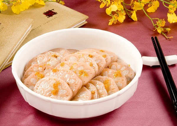 「蟹黃豆腐煲」將綿密的蟹黃、蟹肉、洋蔥、紅蘿蔔等材料切碎以文火慢慢熬煮,再以雞湯勾芡提香,慢慢淋在軟嫩的芙蓉豆腐上,豆腐的綿密細滑在口中不斷迴盪,是網路票選第一名的人氣美饌! 「桂花糖藕」將糯米填入蓮藕中約九分滿,蒸煮 3 小時後去皮切片,淋上桂花糖醬再蒸煮 1 小時,這道入選台北 50 大餐廳的金饌料理吃起來鬆軟清香,上海甜點的功夫首選!