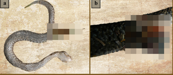 根據《每日郵報》報導,爬蟲類研究團隊2013年5月到馬其頓的蛇島(Golem Grad),看到一條大約20公分的母沙奎(Nose-horned viper)身體斷成半截,驚人的是,竟然有一顆蜈蚣頭露在外面;研究員把蜈蚣從蛇肚中拉出來,測量後發現,蜈蚣全長15公分,重量約4.8公克,而母蛇重量才4.2公克。