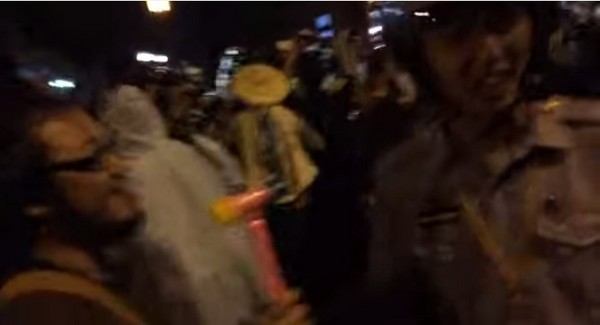 4月28日凌晨2點50分警方開始鎮暴驅離行動,忠孝西路上反核四群眾包括學運領袖林飛帆、陳為廷等人都被噴水抬離。在嚴肅的場景下,卻也有溫馨的畫面,當天有一位被封為「最可愛暴民」的男子,拿「啾啾啾玩具槌」敲警察,就連原本擁有嚴肅表情的警察,也笑了出來。
