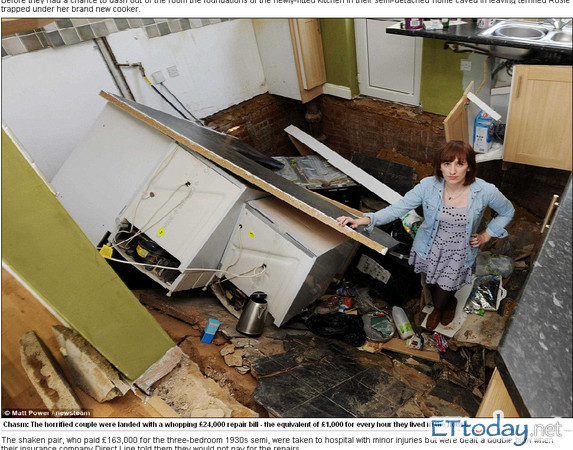 不過,更衰的事情還等著羅希,因為廚房塌陷後的維修費用高達2.4萬英鎊,等於他們住1小時就要付1000英鎊!但是,保險公司以房屋內在結構存在缺陷為由,拒絕支付這筆修理費用。「我感到非常生氣,我們原本想買棟房子永遠住在一起,甚至想在這裡結婚生小孩,但是現在我們必須花光所有積蓄修房子,我們甚至沒有這麼多錢!」羅希憤怒的說。
