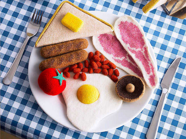 很多餐飲業者店外櫥窗會擺放商品模型供客人參考,做得跟真的一樣!但你相信針織毛線也能辦得到嗎?英國倫敦模型師Jessica Dance細心打造毛線美食以假亂真!Jessica Dance過去完成許多毛茸茸的可愛作品,據說沒有任何織品難得倒她,這回與美食攝影師David Sykes合作,同樣用柔軟的毛線攻勢,不沾任何油煙地將美食端上餐桌,讓人看了想大大咬一口!