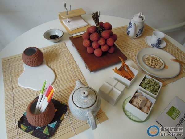 ▲造型玩味、極具創意的荔枝點心杯盤組,售價2,480元。(圖/記者洪菱鞠攝)