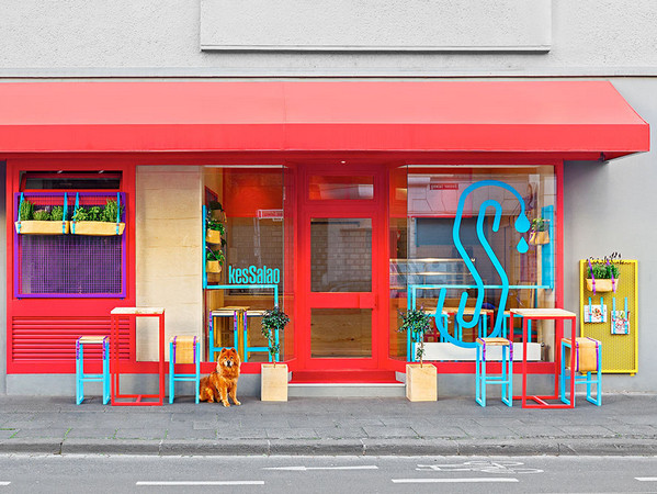 在都市之中開一間店,除了販售的商品及服務本身要有品質,店面的整體與設計如今也是吸引路過人潮的重要因素之一,顯現出越多的吸睛程度便能讓更多潛在的客人停留在商店之前。位於德國波昂(Bonn),出自西班牙設計工作室 Masquespacio 的作品,Kessalao餐館使用大膽的紅、藍、黃、紫來衝擊過路客的眼球,充滿朝氣的鮮豔配色令人印象深刻。