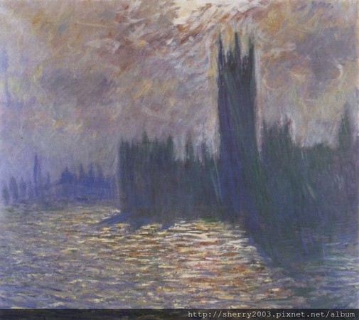 印象派的莫內,他不僅注意到倫敦的晨霧中有黃色調,也更注意到倫敦的晨霧中變化著不同的顏色。於是他用畫筆記錄下不同時間、不同晨霧的倫敦。他曾在寫給妻子的信中提到倫敦,他說: (沒有哪個城市更適合畫家的眼睛。) 於是在1904年莫內展出泰晤士河系列共三十七幅繪畫。莫內的 泰晤士河系列成為了倫敦的標誌。