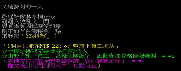 ▲鄉民發起老闆體驗22K挑戰。(圖/翻攝自PTT)
