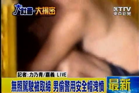 ▲無照駕駛被取締,男子偷警用安全帽洩憤。(圖/東森新聞)