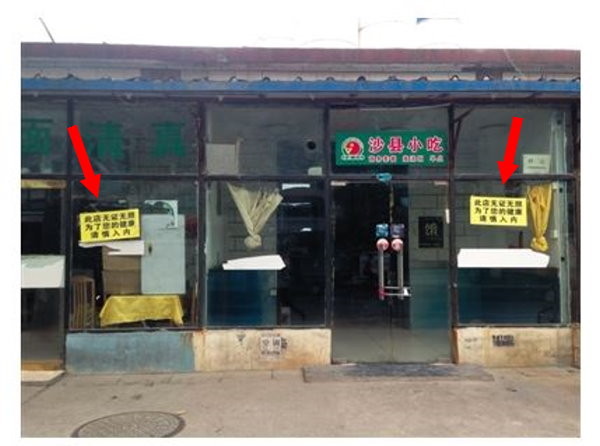 根據《新京報》報導,被貼上「標籤」的店家都是屬於違章建築,因為沒有土地證而無法辦理衛生證等相關證件,所以當地相關單位才會派城管前來貼告示板。截至28日,被警告的10多家店還有5間開著門,但真正尚在營業的卻只剩下1家。