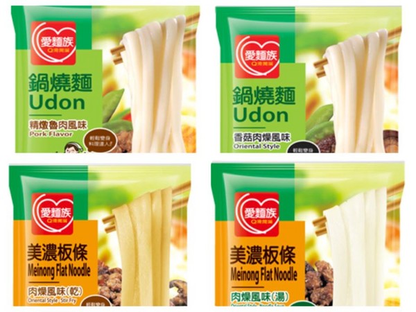 「愛麵族」品牌:精燉魯肉風味、香菇肉燥風味、美濃板條肉燥風味(乾)、美濃板條肉燥風味(湯) 四種