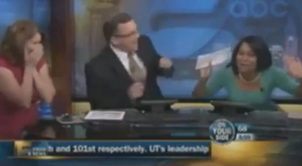 什麼能讓人一大早「精神百倍」?美國田納西州(Tennessee)電視台10日在進行晨間直播時闖進了一「隻」不速之客,牠張著翅膀在攝影棚內來回飛舞,讓2名主播以及一名氣象學家邊報邊尖叫,還有人說「這個東西比咖啡更讓人清醒」。