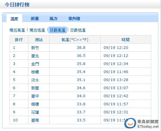 ▲新竹38.8度台灣今年新高溫。(圖/中央氣象局)