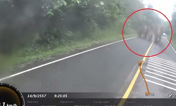 ▲有騎士發現前方有象群停在路旁,原本想減速通過。(圖/翻攝自YouTube)