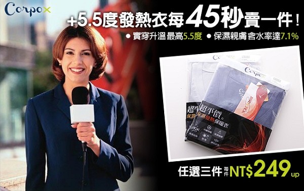 天氣這麼冷!發熱衣人人都在買,但越貴不代表越好!你還不知道怎麼挑嗎?市面上實穿升溫最高、最便宜的 Corpo X +5 度發熱衣,每 45 秒就賣出一件,記者也來採訪見證!