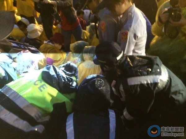 警方開始驅離後,現場民眾不願配合,雙方發生激烈肢體衝突,遭拖走的抗議人士,則是一邊大喊「勞工受苦,政府何在?」驅離半小時左右,警方已載走4車左右的抗議人士,6點17分左右,府前淨空完畢。