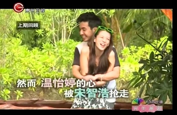 ▲從後面來個熊抱,吐個舌頭更開心。(本圖與以下圖片/翻攝自完美邂逅官方频道 The Romantic Official Channel)